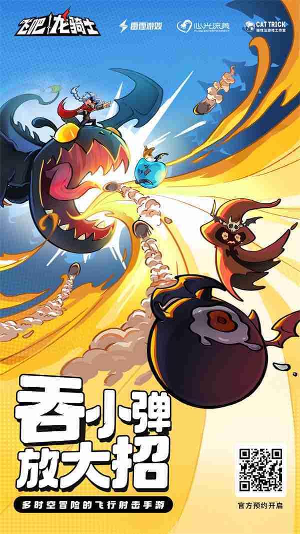 吞小弹,,,,放大招!!!多时空冒险的飞行射击休闲手游《飞吧龙骑士》官方预约现已开启。。现在预约还有丰厚的福利等你领!!!!大家可以关注《飞吧龙骑士》官方公众号,,了解最新游戏进展。。