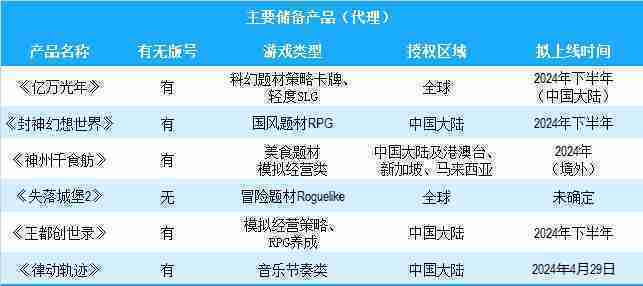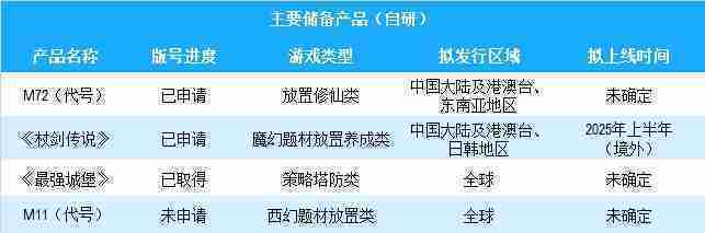 公司有多款储备产品,,,,涵盖放置类、、、、策略类、、、RPG、、Roguelike等多元化游戏品类,,,储备的主要自研和代理产品如下::