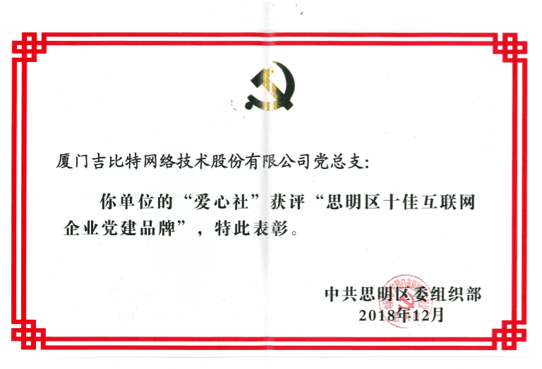 经初审评选、、、网络评选和专家评审等环节,,,"厦门918.com网络技术股份有限公司党总支-爱心社" 从全区28个参评党建品牌中脱颖而出,,,获评"思明区十佳互联网企业党建品牌"。。。